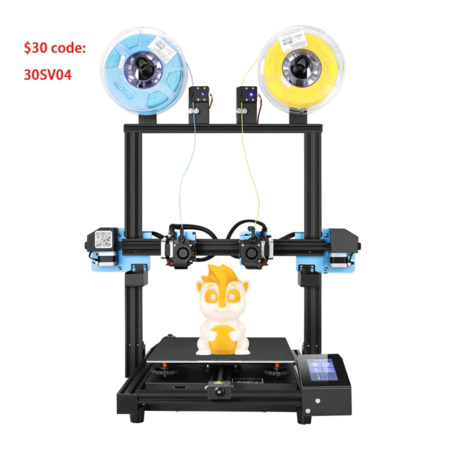 Sovol has the SV04 IDEX 3d printer on sale for $349 with the $30 off code 30SV04 and it also comes with two spools of filament.
