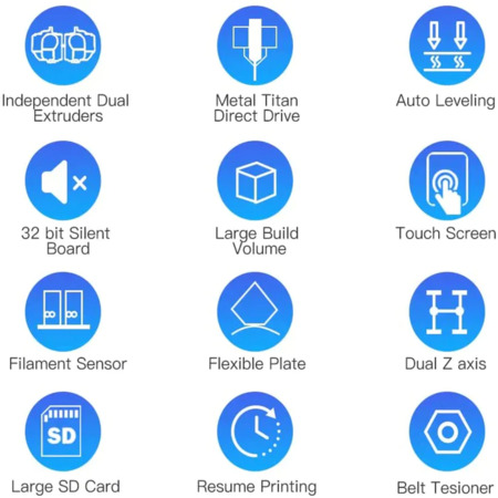 - Extrusion Tech: Independent Dual Direct Drive Metal Extruder (IDEX)