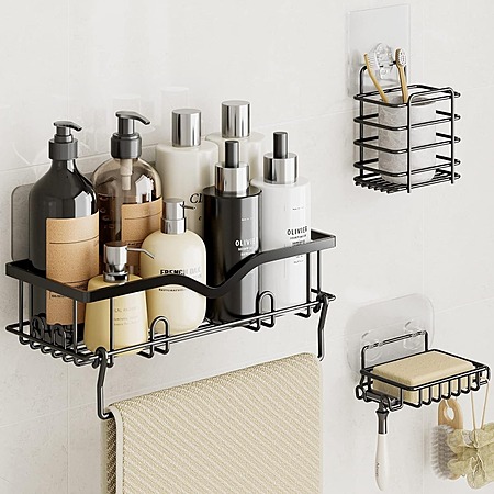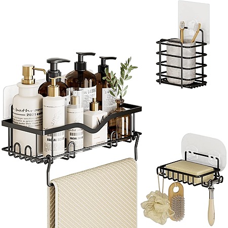 AMADA HOMEFURNISHING 3-Piece Stainless Steel Shower Caddy Set w/ Adhesive for $21.99 - 61% off code w/