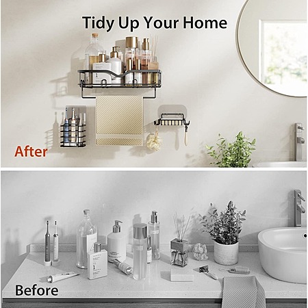 Product Details:- No Drilling: Includes strong adhesive panels to ensure stability in damp environments. Easily remove the adhesive with a hairdryer without leaving sticky residue.