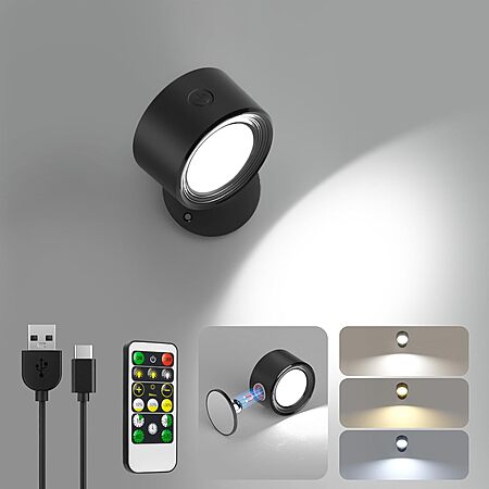 - 【3 Color Temperature & Dimmable Wall Sconces】Button control and remote control both can switch the color temperature(3000K-4500K-6000K). Also two ways for dimming this magnetic wall lights. Button control: Stepless(Long press). Remote control: ①stepless(Button"+"&"-"); ②4 levels: 10%,40%,80%,100%. You can choose brightness based on different usage scenarios.