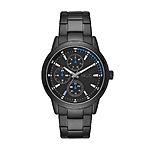 features a black dial and multifunction movement.