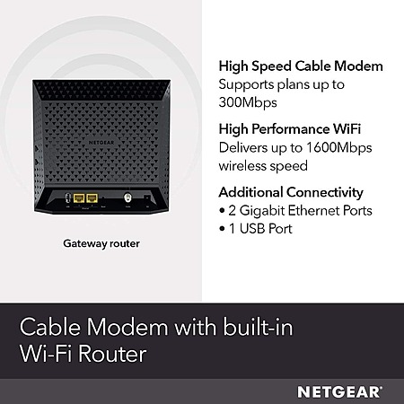 • Three-in-one DOCSIS 3.0 Cable Modem + AC1600 WiFi Router+ 2 Gigabit Wired Switch