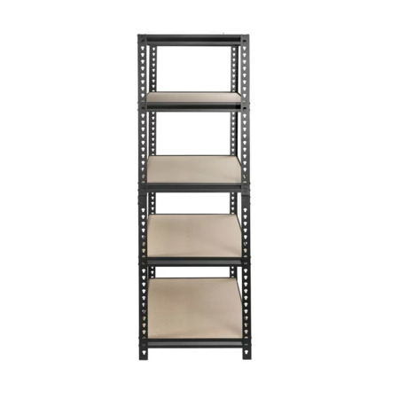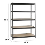 This WORKPRO 48-inch Freestanding Steel Shelf is the perfect storage rack for your garage, workshop, or home! Constructed of durable steel and particle board that is made to last. Each shelf holds up to 800 pounds allowing you to neatly organize and store away your heaviest items. This versatile unit can be assembled either vertically or horizontally. Featuring a black powder-coated finish for rust and tarnish resistance. This shelf is an essential item to keep your work area clean and organized. Get yours today! For adult/young adults