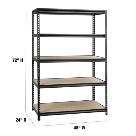 Model: WORKPRO 48-inch 5-Tier Freestanding Shelf with Particle Board Shelves, 800 lb. Capacity, Adult