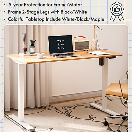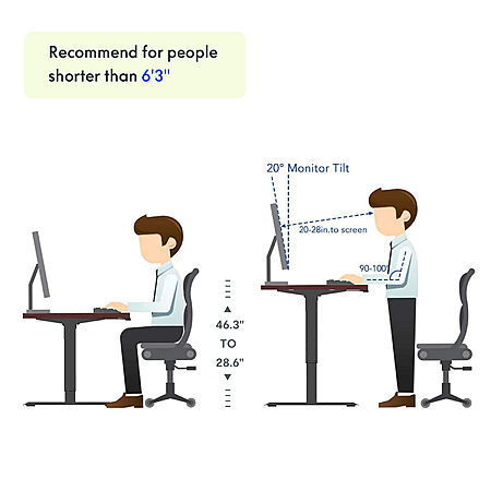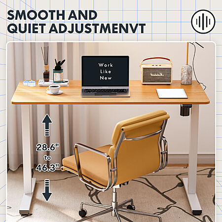 • The motor lift mechanism offers smoother height adjustments, from 28.6" to 46.3", at a speed of 0.6"/second with low noise (under 50 dB) while running.