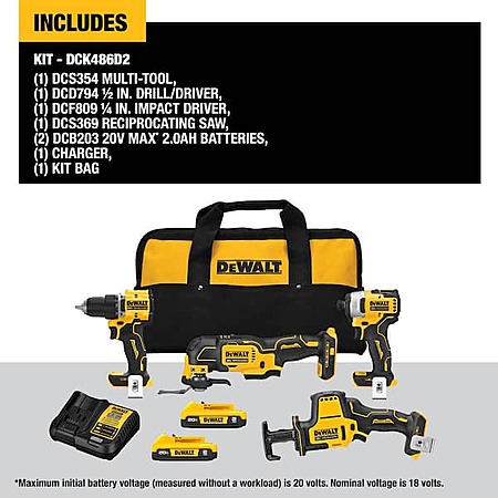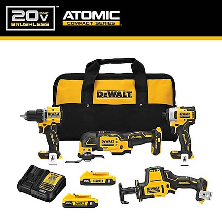 DEWALT ATOMIC 20-Volt Lithium-Ion Cordless Brushless Combo Kit (4-Tool) with (2) 2.0Ah Batteries, Charger and Bag $299 + free shipping