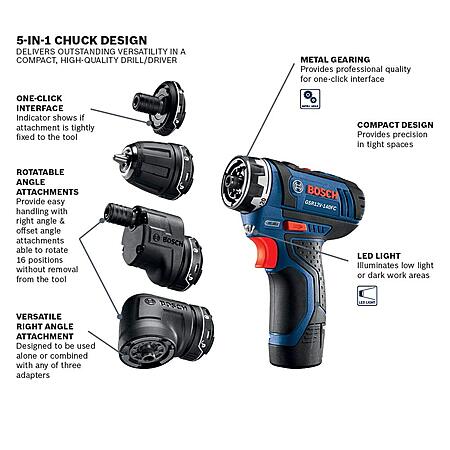 Model: Bosch 12V MAX Flexiclick 1/4 in. Cordless 5-In-1 Drill Kit (Battery & Charger)