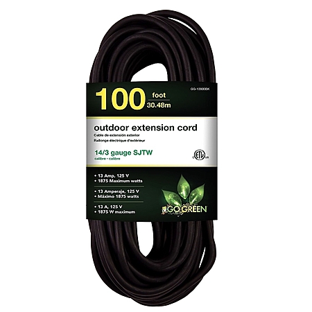 GoGreen Power (GG-13800BK) 14/3 100’ SJTW Outdoor Extension Cord, Black, 100 Ft - $27.00