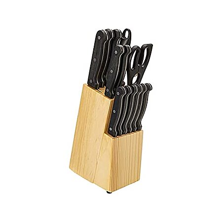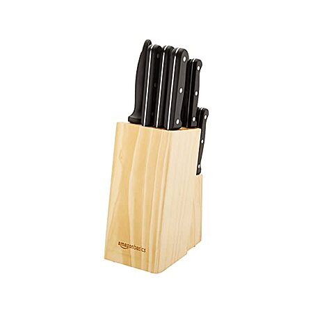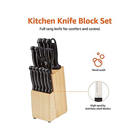 14-Piece Whitelabeled (Amazon Basics) Kitchen Stainless-Steel Knife Set w/ Pine Wood Block - $17.99 w/ Amazon Prime