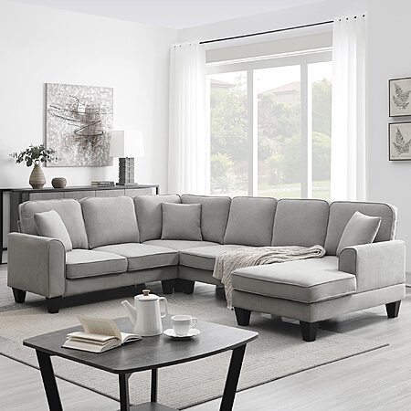 Spacious & Sturdy Build: Crafted with a sturdy solid wood frame, reinforced by an iron back support, and enveloped in 100% polyester fabric, this U-shaped combination sofa offers comfort and durability. Perfect for apartments, houses, or conference rooms, it provides a cozy space for gatherings and relaxation.