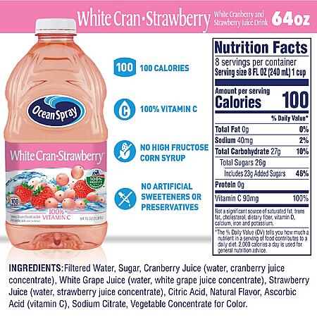 64-Oz Ocean Spray White Cran-Strawberry Juice Drink $2.38 w/ S&S+ Free Shipping w/ Prime or on $35+