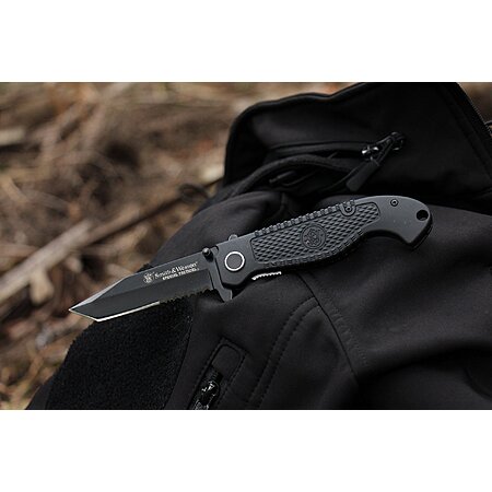 Model: Smith & Wesson Special Tactical CKTACBS 8.1in High Carbon S.S. Folding Knife with a 3.5in Serrated Tanto Blade and ABS Handle for Outdoor, Survival and EDC