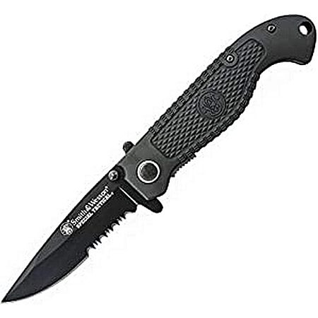 Amazon [amazon.com] has Smith & Wesson Special Tactical Partially Serrated Folding Knives (Black) for $8.80 listed below. Shipping is free w/ Prime or on $25+ or $35+ orders (minimum requirement varies by location).Smith & Wesson [smith-wesson.com] also has Special Tactical Folding Knives (various) for $8.80. Shipping is free on $50+ orders.