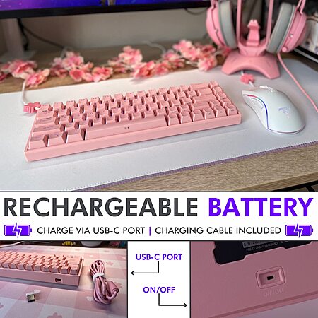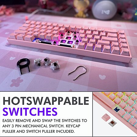 Super cute moddable compact keyboard in PINK: https://www.amazon.com/dp/B096F28TSC/?th=1