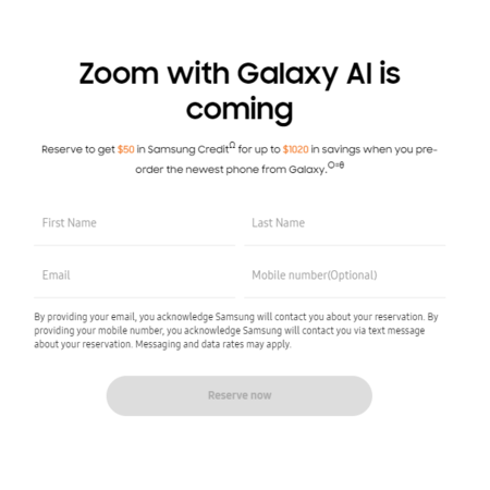 Note, must fill out the form completely to qualify; by providing your email, you acknowledge Samsung will contact you about your reservation.