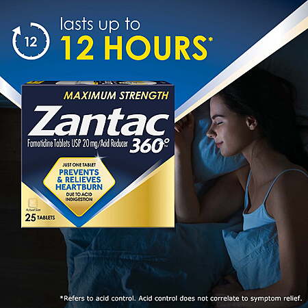 Zantac 360 Maximum Strength Prevents & Relieves Heartburn 20mg Tablets /Acid Reducer 25ct - $8.98 and $3 Walmart Cash Reward - Plus members $8.98
