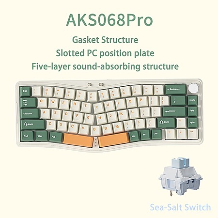 Ajazz AKS068 Pro Alice Wireless 65% Mechanical Keyboard (Green or Gray) on sale for