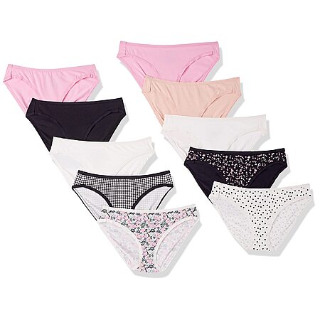 Model: Amazon Essentials Women's Cotton Bikini Brief Underwear (Available in Plus Size), Pack of 10, Multicolor/Checked/Dots/Floral, X-Small