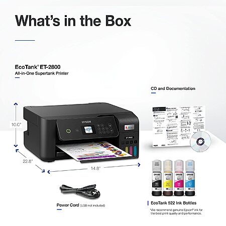 Epson EcoTank ET-2800 AIO Wireless Color Inkjet Printer + $60 Amazon Promo Credit