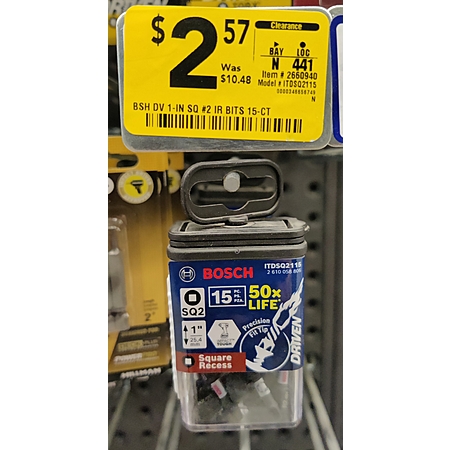 Bosch SQ2 Square Drive Bits - 15 pack - B&M YMMV $2.57