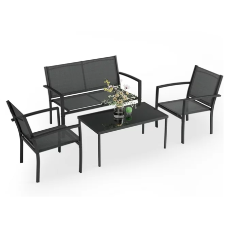 Model: Lacoo 4 Pieces Patio Indoor Furniture Outdoor Patio Furniture Set Textilene Bistro Set Modern Conversation Set Black Bistro Set with Loveseat Tea