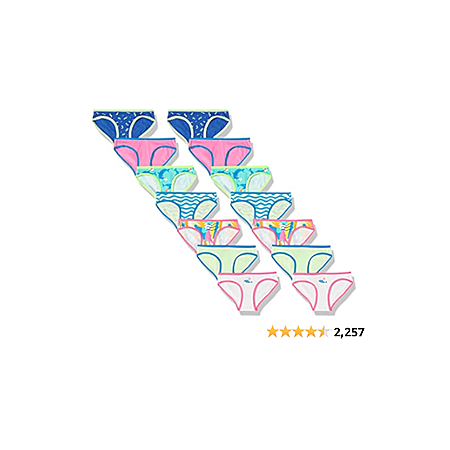 Model: Amazon Essentials Girls' Bikini Underwear, Pack of 14, Multicolor/Dolphin/Party, Medium