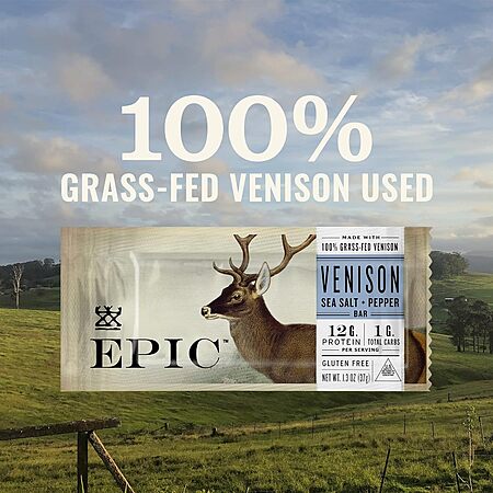 12-Count Epic Keto Friendly Gluten Free Protein Bars (Venison Sea Salt + Pepper)