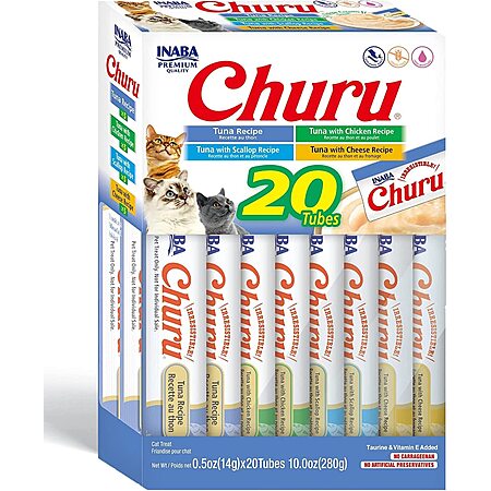 Amazon has select 20-Count 0.5-Oz Inaba Churu Squeezable Purée Cat Treats (Various Flavors) for the prices listed when you clip the 25% off coupon on the product page and check out via Subscribe & Save. Shipping is free w/ Prime or on orders of $35+.