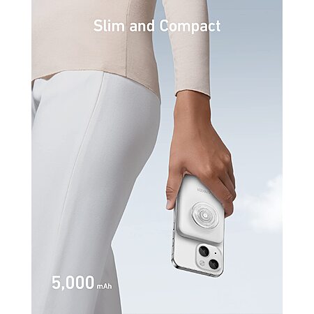 Anker 622 Magnetic Battery (MagGo with PopSockets Grip), 5,000mAh Portable Charger with Swappable PopGrip and Stand, USB-C for iPhone 14/13/12 Series (White) $39.99