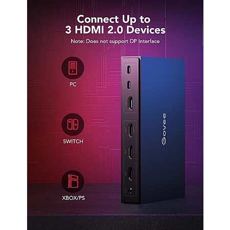 • OTA for the Latest Compatible Games: Connect up to 3 HDMI 2.0 devices at one time with the Govee AI gaming lights sync box. Compatible with Valorant, LOL, OW2, Apex, PUBG, COD, Fortnite, and CS Go. More supported games coming soon. Update the OTA to get the newly supported games.(Note: Not support HDMI 2.1 and LAN)