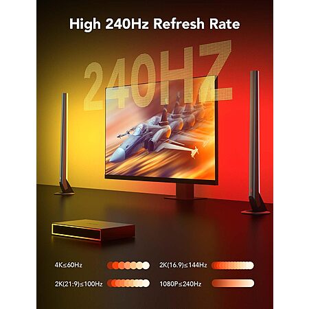 • Game at up to 240Hz at 1080p, plus 144Hz 2K & 60Hz 4K. Govee HDMI gaming lights sync box supports HDR10. The light strip is suitable for 27-34 inch monitor.