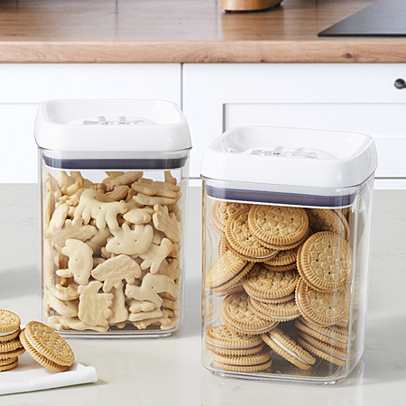 • 2 Clear Food Storage Containers with Easy Open Lids