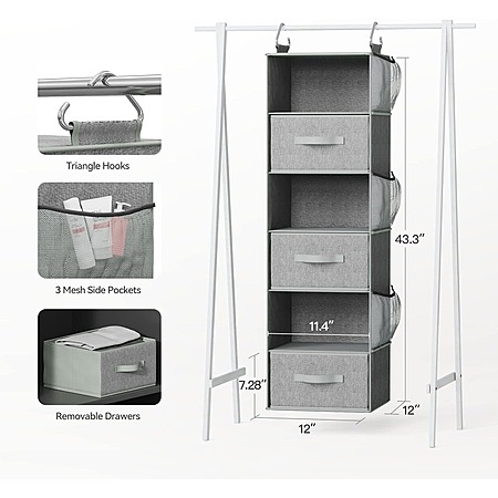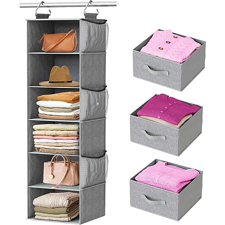 Prime Members: Pipishell 6-Shelf Hanging Closet Organizer w/ 3 Drawers (Grey)