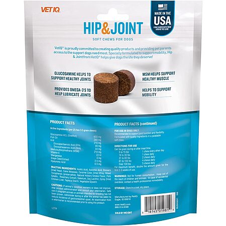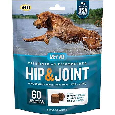 60-Count VetIQ Dog Hip & Joint Soft Chew Supplements (Standard Strength, Chicken) for $11.98 - 5% off when you checkout via Subscribe & Save - 40% off when you clip the coupon on product page - $2.39 in-cart discount (automatically applies) =