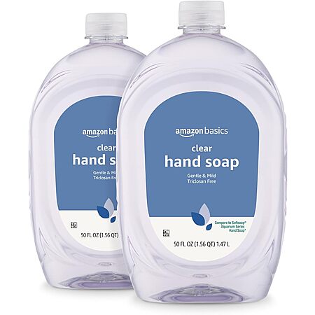 2-Count 50-Oz Amazon Basics Gentle & Mild Clear Liquid Hand Soap Refill