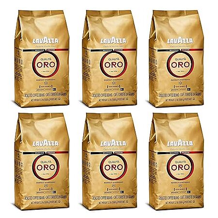 Model: Lavazza Qualità Oro Whole Bean Coffee Blend, Medium Roast, 2.2-Pound Bag (Pack of 6) ,Full-bodied medium roast with sweet, aromatic flavor, Non-GMO, Value Pack