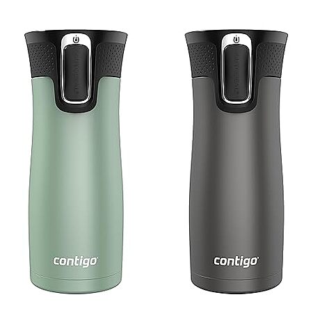 $30.55: Contigo West Loop Stainless Steel Vacuum-Insulated Travel Mug, 16oz 2-Pack, Agave Metallic & Sake Metallic