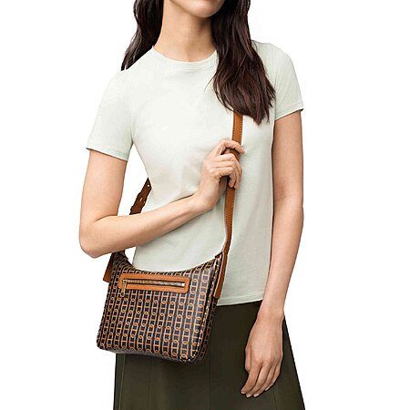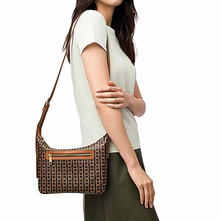 Model: Fossil Cecilia Leather Small Top Zip Crossbody Bag - Brown Multicolor