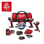 5-Tool Milwaukee M18 18V Cordless Combo Kit w/ 2-Batteries, Charger & Tool Bag