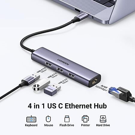 UGREEN Group Limited via Amazon [amazon.com] has for Prime Members: 4-in-1 USB C to Ethernet Adapter on sale for $11.69 w/ promo code 354NF2EW