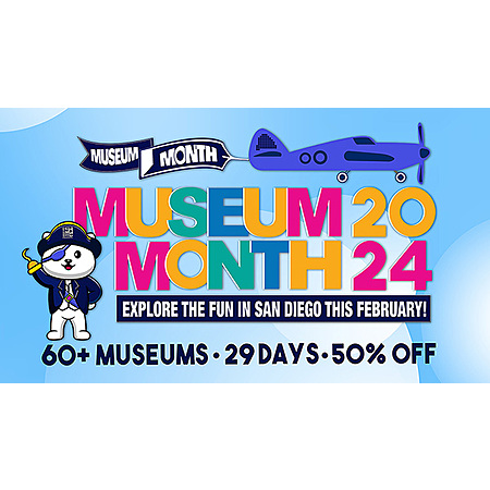 San Diego Museum Month [sandiegomuseumcouncil.org] pass this February at more than 80 San Diego public libraries and start exploring the fun with 50% off admission to more than 60 San Diego County museums, historic sites, gardens, zoo/aquariums and more from starting February 1, 2024