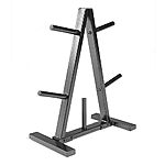 • Black powder coat finish & steel construction offers a durable, sturdy rack for your weights. The triangular design allows maximum weights to be stored in a smaller space. Five posts allow multiple areas for different sized weights