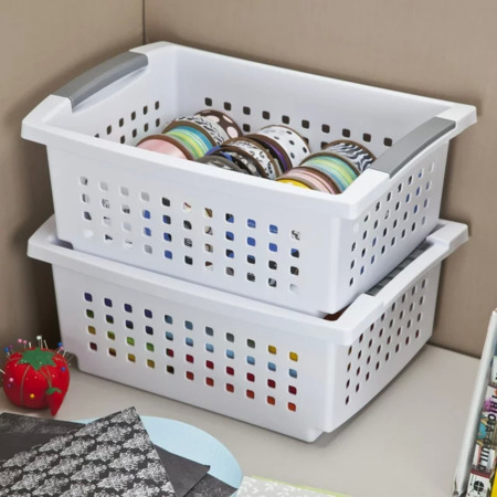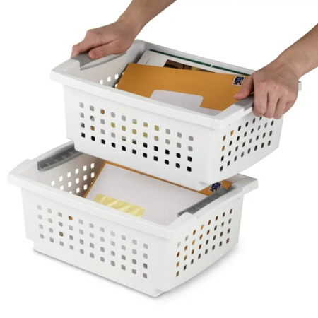 Model: Sterilite Small Stacking Basket, Stack Storage Bins, Organize Closets, Pantry, Bathroom or Classroom