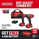 Lowes - CRAFTSMAN V20 2-Tool Power Tool Combo Kit with Soft Case (2-Batteries Included and Charger Included) + free 4ah battery $89