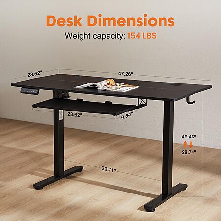 48" Sweetcrispy Electric Standing Desk w/ Pull-Out Keyboard (Black or Brown)
