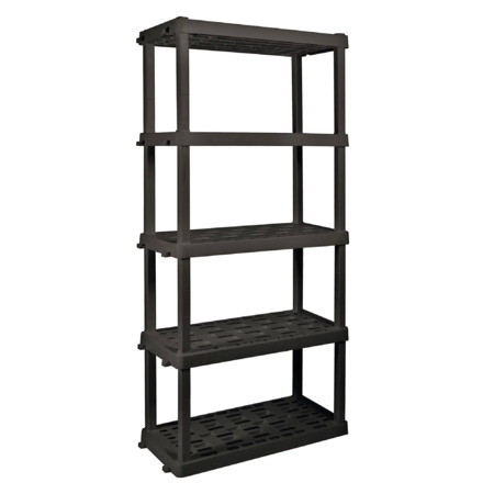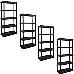 Model: Hyper Tough 74" H x 18" D x 36" W 5 Shelf Plastic Garage Shelves, Pack of 4 Storage Shelving Units, Black 750 lbs Capacity