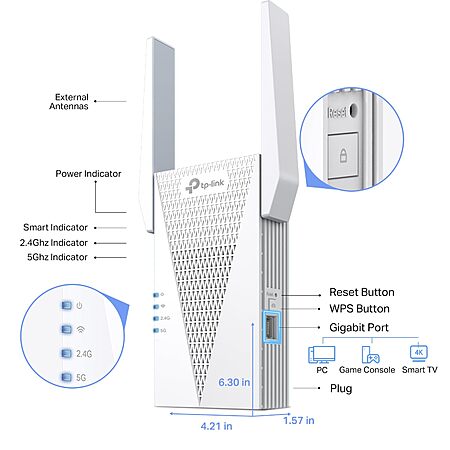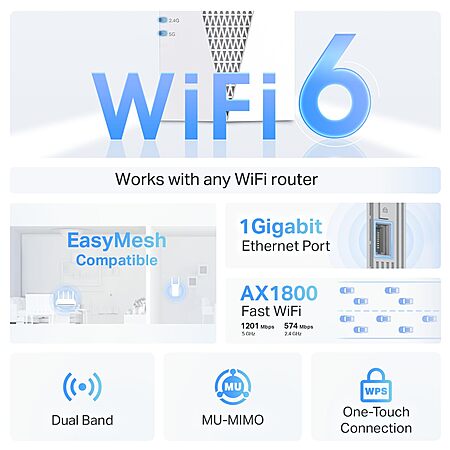 TP-Link AX1800 (RE615X) WiFi 6 Range Extender with Ethernet Port Dual-Band Wireless Repeater OneMesh Compatible $64