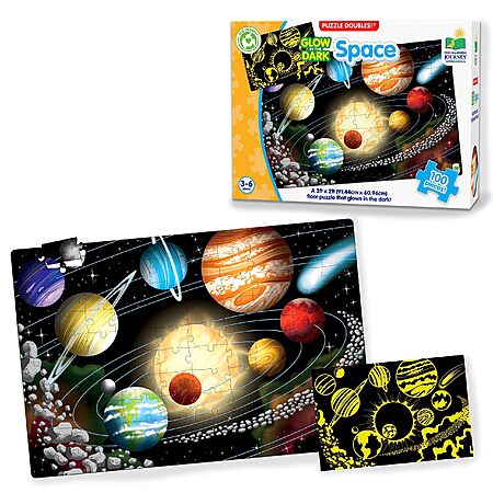 Model: The Learning Journey Puzzle Doubles Glow in the Dark - Space - 100 Piece Glow in the Dark Puzzle, Space Puzzles For Kids Ages 4-8, Solar System Puzzle For Kids, Award Winning Educational Toys