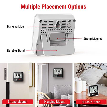 • Equipped with stand for tabletop, magnetic back and hanging hole options, can be placed on night stand, in incubator, refrigerator, etc.